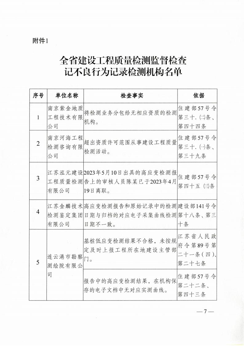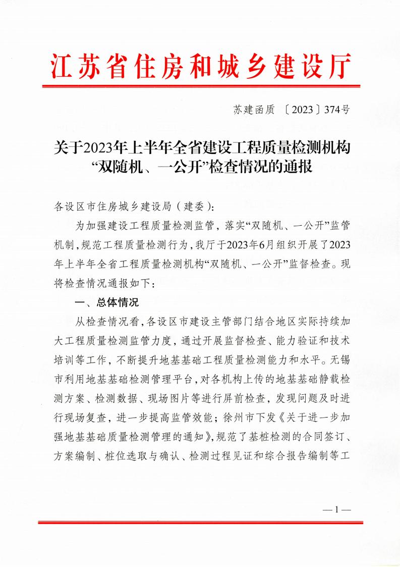 关于2023年上半年全省建设工程质量检测机构“双随机、一公开”检查情况的通报